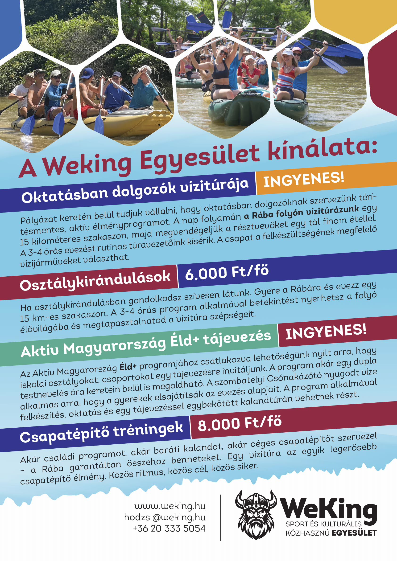 Helyszín: Szombathely, Gayer-park A WeKing Egyesület saját ötletét megvalósítva a Gyöngyös-patakon 1665 gyerkőcöt ismertetett meg a kenuzás élményével.